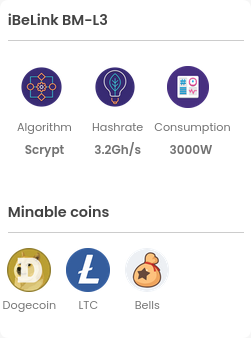 iBeLink BM-L3 is the latest ASIC miner for the Scrypt algorithm, marking a significant milestone in their product line. Specifically designed for mining Dogecoin (DOGE) and Litecoin (LTC), BM-L3 offers an impressive hashrate of up to 3.2Gh/s with a power consumption of 3000W in high-performance mode. This mode is ideal for large-scale mining farms, prioritizing maximum output. For quieter environments, such as homes or offices, BM-L3 also features a silent mode, delivering a hashrate of 2.8Gh/s at a reduced power consumption of 2400W and significantly lower noise levels.