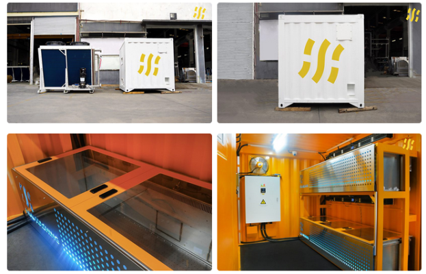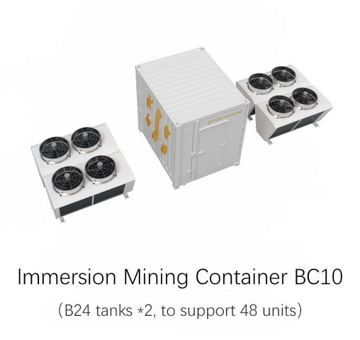 Immersion Mining Container BC10 integrate all required devices, including immersion tanks, PDC, smart PDUs, network interfaces, external coolers, monitoring devices.